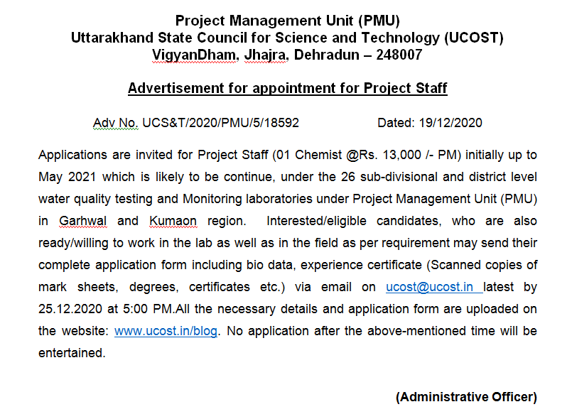 News and Events Advertisement for Project Staff in PMU Project 19/12/202019/04/2021 Admin-3 Click Here for Qualification Details:- Click Here for Application Format:- Join Our Facebook Page.