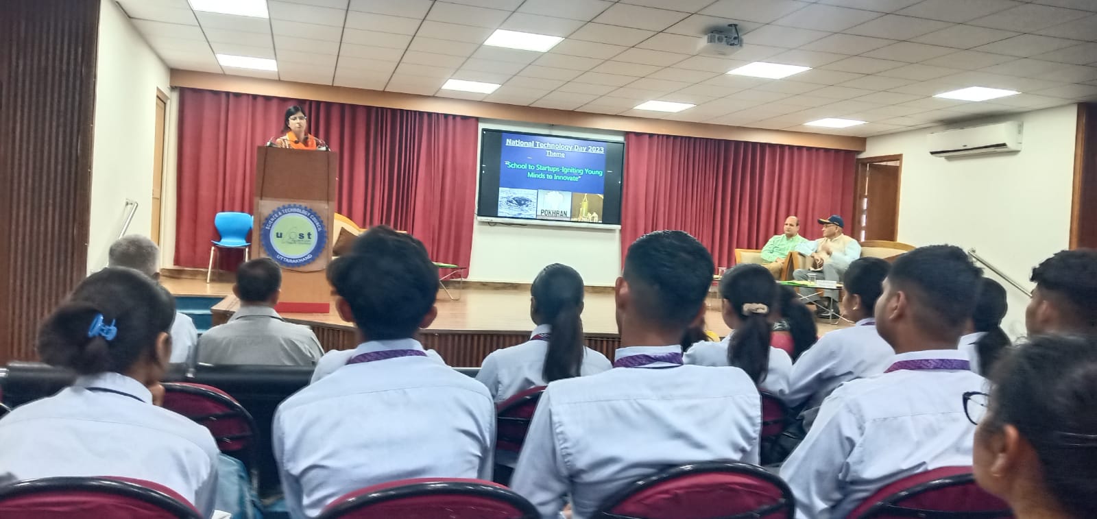 On the occasion of National Technology Day 2023, Uttarakhand State Council for Science & Technology (UCOST) organised a popular lecture under the theme “School to Startups- Igniting Young Minds to Innovate” on 11 May 2023 at Vigyan Dham, Uttarakhand State Council for Science and Technology (UCOST), Dehradun. Welcome address was delivered by Dr D. P. Uniyal, Joint Director, UCOST. He talked about historical perspective of science and technology in India and use of technologies in various areas like agriculture, health and medicine, transport system etc. The Guest Speaker of the event was Rear Admiral Om Prakash Singh Rana, AVSM, VSM (Retd.). He talked about the importance of National Technology Day and the collateral effect of science and technology on society. He delivered his lecture under the theme ‘Path to Progress- A Perspective’. He emphasized on character building, service to nation and history and advancement of various defence technologies. The session was coordinated by Dr Aparna Sharma, Senior Scientific Officer, UCOST. The program was attended by faculty members and more than 250