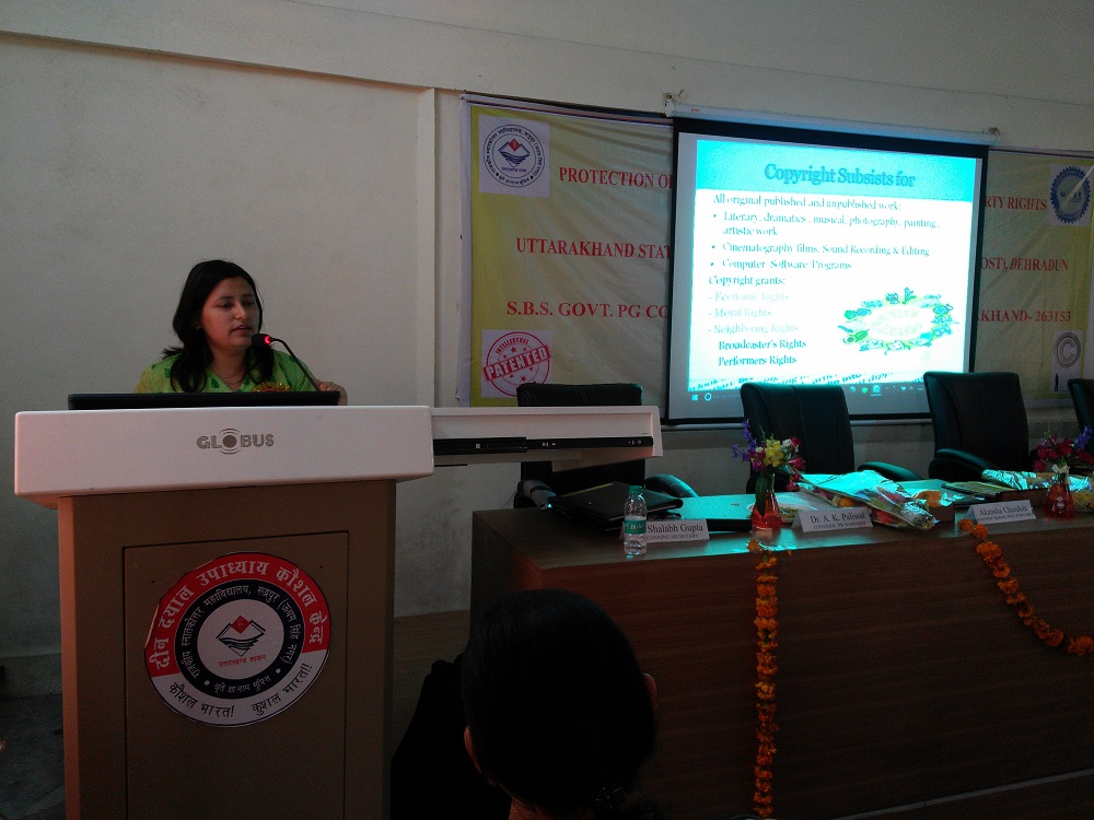 IPR Awareness Workshop at S.B.S Govt. P.G College, Rudrapur, U.S Nagar on 27 March 2017.