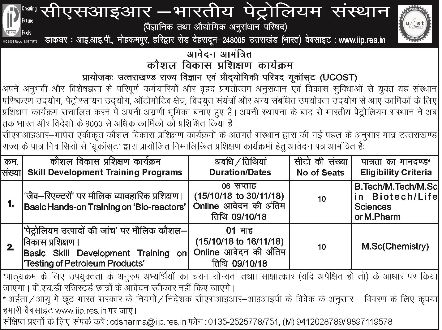 News and Events Skill Development Training Courses in collaboration with CSIR-IIP, Dehradun 24/09/201806/05/2021 Admin-3