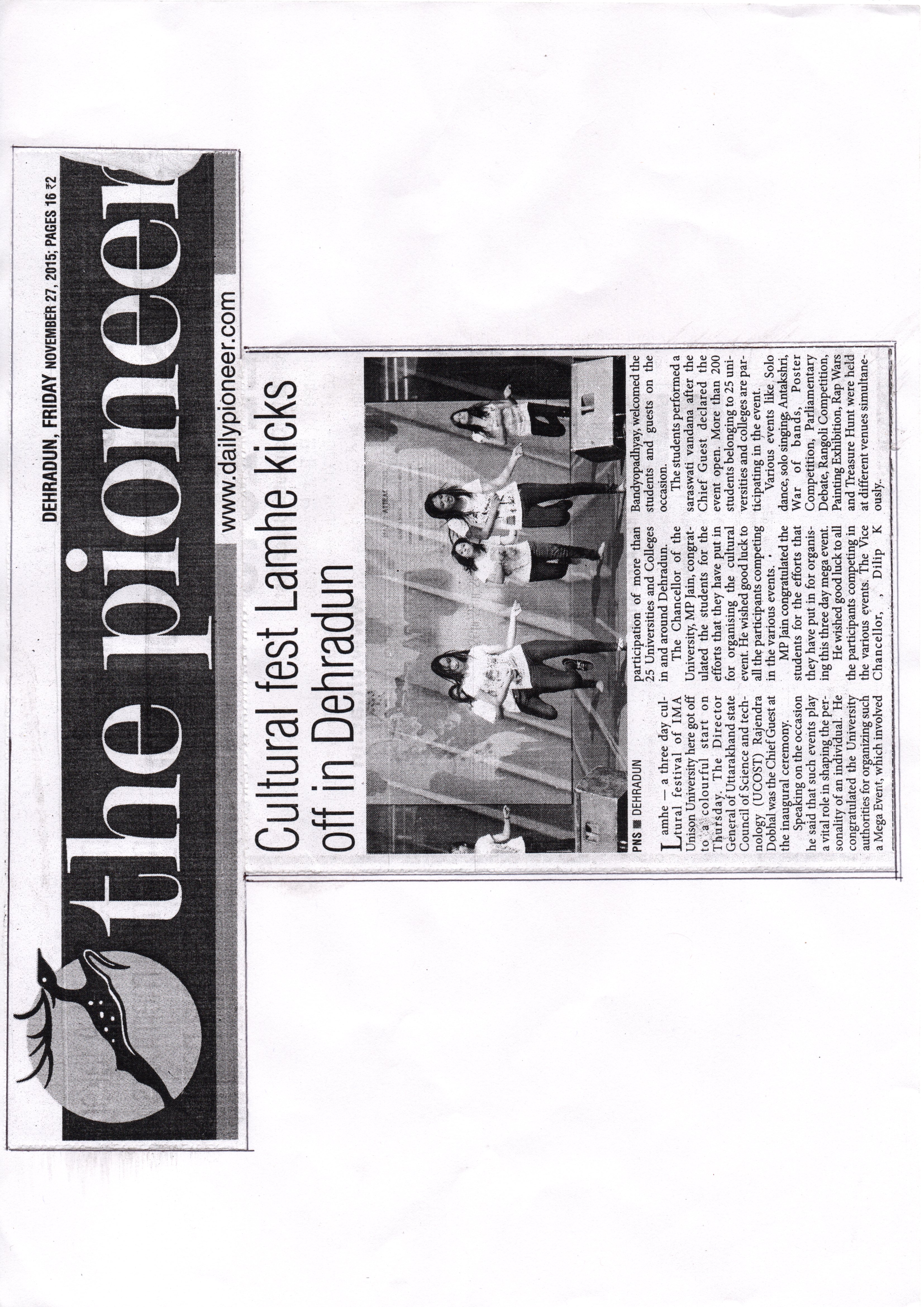 Speaking on the occasion he said that such events play a vital role in shaping the personality of an individual. He congratulated the university authorities for organising such a Mega Event, which would involved participation of more than 25 universities and colleges in and around Dehradun.