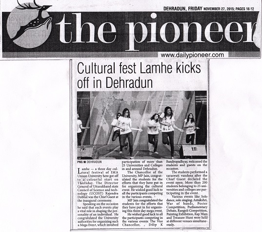 Lamhe - a three day cultural festival of IMS Unison University here got off to a colourful starts on Thursday (26th Dec).