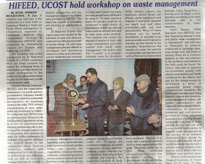 A workshop was held here in the auditorium of a local hotel on Experience Sharing in Solid and Plasic Waste management in Uttarakhand, organised by Himalayan Institute for Environment, Ecology & Devlopment (HIFEED) and sponsored by Uttarakhand State COuncil for Science & Technology (UCOST)