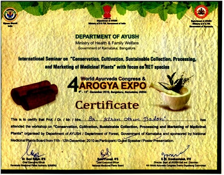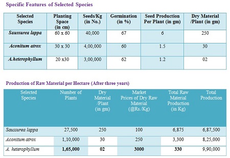 Development of field applicable agro technologies of Aconitum atrox, Aconitum heterophyllum and Saussurea lappa medicinal Plants and their extension to the local growers through training programme as well as the successful preparation of "Seed Park" (FieldGene Bank) coupled with the promotion of herbal cultivation by providing the seed material vis-à-vis technical know how to the populace are the main outputs of the project. The outcome of the awareness programme in context with the conservation and cultivation of medicinal plants was that a large number of villagers are ready to adopt the practice of ex-situ conservation through cultivation for their economic upliftment but due to availability of planting material resources only a few growers were provided the germplasm .. In due course of time, an adequate amount of planting material will be prepared for providing to the desirous families of the locale. The technologies of multiplication of medicinal plants were imparted to the local villagers in the extensive field level training programme (TRUGA Camps) at the project demonstration site. Besides, the methodology for active people participation in conserving the MAP biodiversity, the ex-situ conservation of rare and threatened taxa through cultivation, results of innovative techniques for mass scale propagation as well as other important aspects in this direction were presented in regional seminars, national conference and international symposiums. The research findings have been highlighted in the Regional Consultation on Maps: Past Efforts and Future Endeavour organised by HVPVC/SLPR/ICIMOD on 22-23 September 2009 at Kathmandu ,Nepal as well as Fourth World Ayurvedic Congress and international seminar on "Conservation, Cultivation, Sustainable Collection, Processing and Marketing of Medicinal Plants" ,in which a guest lecture was delivered on "Increasing Gender-balanced livelihood Security through Conservation & Cultivation of High Altitude Medicine Plants: Uttarakhand Himalaya India on 11th and 12th December 2010 at Bangalore.