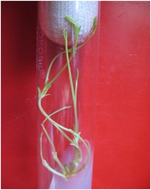 Ephedra is a seed bearing non flowering plants belonging to the highly evolved order of Gymnosperm, Ephedrales. The major active ingredients of Ephedra which impart medicinal property in it are alkaloids that constitute 0.5 to 2.5 % of total mass, and are referred to as ephedrine type alkaloids. Over exploitation due to its medicinal property has render it to endangered category. Tissue culture techniques offer a suitable alternative to traditional methods of multiplication by resorting to micro-propagation and then re-introduction of plants into affected areas. The basal MS medium supplemented with different plant growth regulators as adjuvant have been used to embryo culture and nodal and internodal segment culture raised plantlets of Ephedra gerardiana. 20-25 days after rooting, plantlets were transferred to plastic pots containing autoclaved coarse sand and garden soil in equal proportions for transplantation, and irrigated with sterile tap water. Initially the plants were covered with a small plastic bag and chamber for 20-25 days for acclimatization. The plants thus produced were finally grown in glass house followed by soil beds in Forest Dept. Medicinal Plant Nursery, Deovan, Chakrata, Uttarakhand. PI has successfully demonstrated the technology for micropropagation of Ephedra gerardiana from nodal explants and embryo followed by successful transfer to field .
