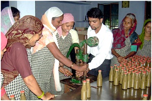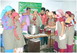 At UCOST-TRC of Sahaspur, 16 batches of training have been conducted and 258 Master trainers (106M/152F) have been trained for preservation and storage of mango, green chilies etc., storage of apple, mixed fruit jam and pulp, orange and Rhododendron squash, amla murabba, various products of tomato, continental sauce, papaya chutney, spice processing, packing, quality control and marketing by using essential machinery like shrink wrapping machine, mixing washing tanks, ss vessel, weighing machine, sterilization tanks, hydraulic press and dispenser. The unit is equipped with a vacuum tube Collector model solar water heater that heats 200 liters of water up to 55 - 60oC on a sunny day in winter. The water is being used for domestic (for baths) and for industrial applications (with boiler).